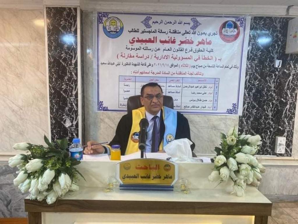 كلية الحقوق تناقش في رسالة ماجستير الخطأ في المسؤولية الادارية/دراسة مقارنة،،،