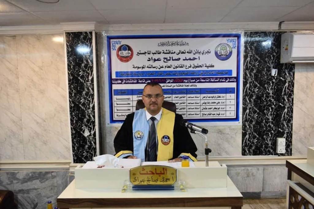 كلية الحقوق تناقش في رسالة ماجستير فاعلية الادارة في ازالة التجاوزات على المال العام