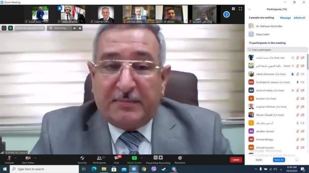 برعاية وزارة التعليم العالي والبحث العلمي ،محافظة نينوى ،الوكالة الجامعية الفرنكفونية، مجلة الرافدين للحقوق ، اقامت كلية الحقوق في جامعة الموصل مؤتمرها الدولي التاسع تحت عنوان ( العشوائيات بين الحق في السكن والتجاوز على اراضي الدولة) من خلال تطبيق zoom، يوم الاحد الموافق 4 تشرين الاول 2020 ، بحضور السيد محافظ نينوى نجم الجبوري والاستاذ الدكتور منير سالم طه المساعد العلمي لرئيس جامعة الموصل وعميد الكلية الاستاذ المساعد الدكتور وسام نعمت السعدي ،وبمشاركة باحثين من الدول العربية والجامعات العراقية.