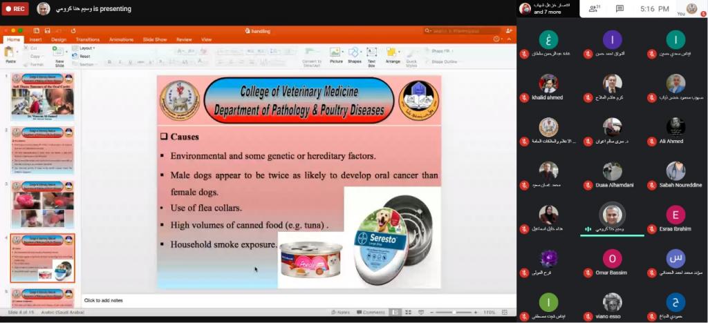 كلية الطب البيطري تقيم دورة الكترونية عن امراض الفم والاسنان في الحيوانات الاليفة