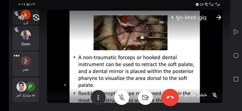 كلية الطب البيطري تقيم دورة تدريبية الكترونية عن طرق الفحص السريري والمختبري للحيوانات المنزلية
