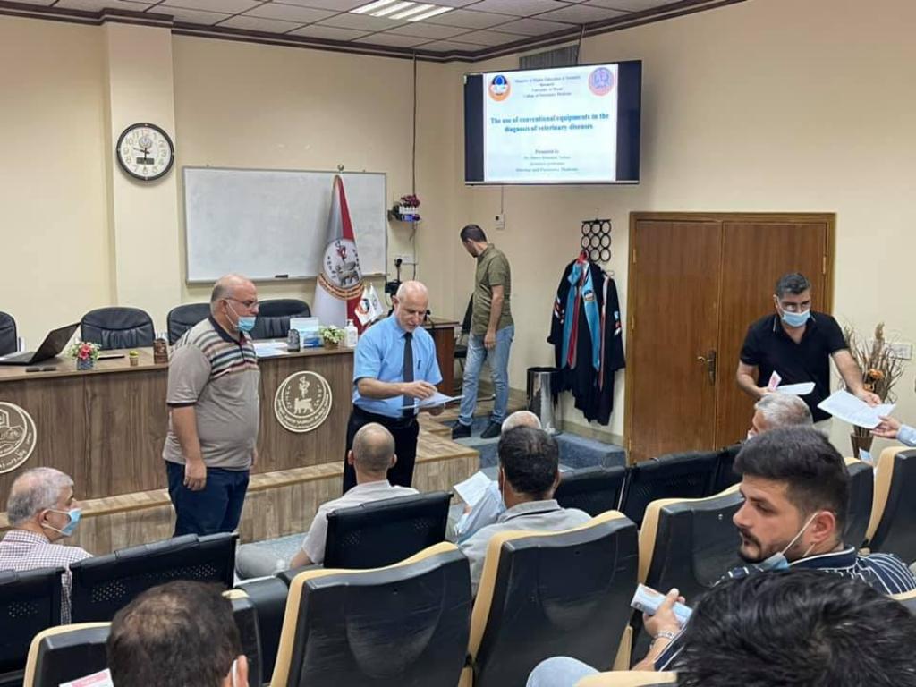 اقامت كلية الطب البيطري في جامعة الموصل ورشة عمل في مجال تشخيص وعلاج الحالات المرضية في العيادات البيطرية الخاصة، للمدة من ١٥-١٧آب ٢٠٢١، حضر جانباً من محاضراتها الاستاذ الدكتور ظافر محمد عزيز عميد الكلية، كما شارك فيها عدد من تدريسي الكلية في اختصاصات مختلفة بحضور عدد من الاطباء البيطريين العاملين في القطاع الخاص ومن خريجي الكلية الجدد.