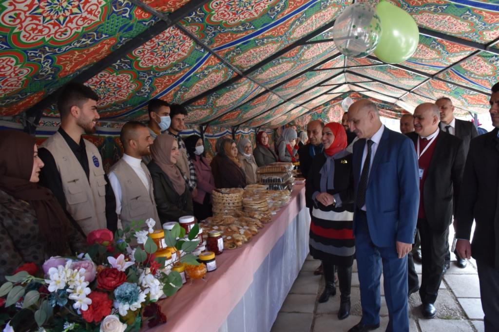 مطلعاً سيادته على مضامين المعارض المختلفة التي شملت رسومات الطلبة وأعمال يدوية ومعرض للنباتات وآخر للأطعمة والمنتجات الغذائية، وجناحاً طبياً أيضاً.