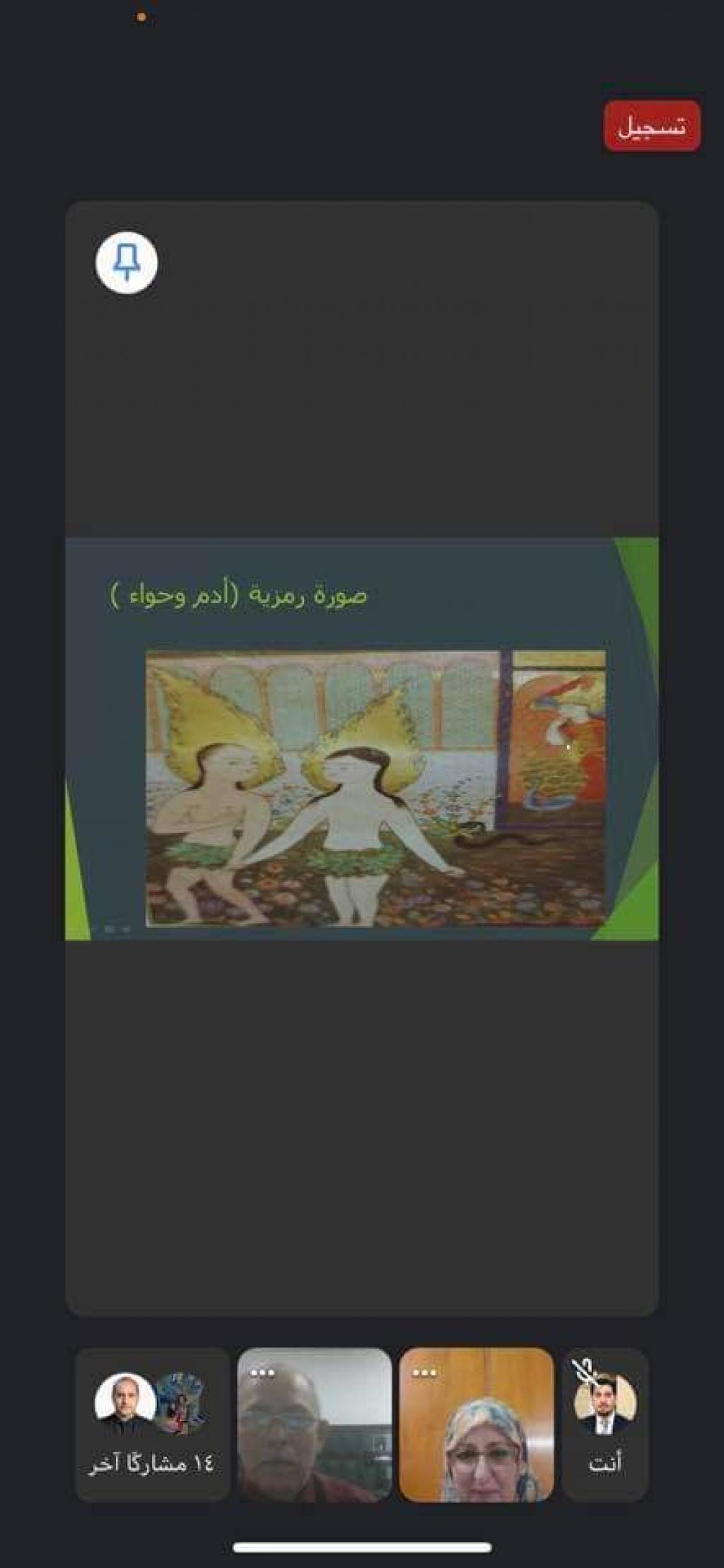 اقام قسم الفنون التشكيلية في كلية الفنون الجميلة بجامعة الموصل حلقة نقاشية يوم السبت الموافق 17 نيسان 2021 بعنوان صور الأنبياء في المخطوطات الإسلامية قدمتها م . مائدة طارق محمد عبر منصة meet بحضور عدد من أساتذة الكلية .