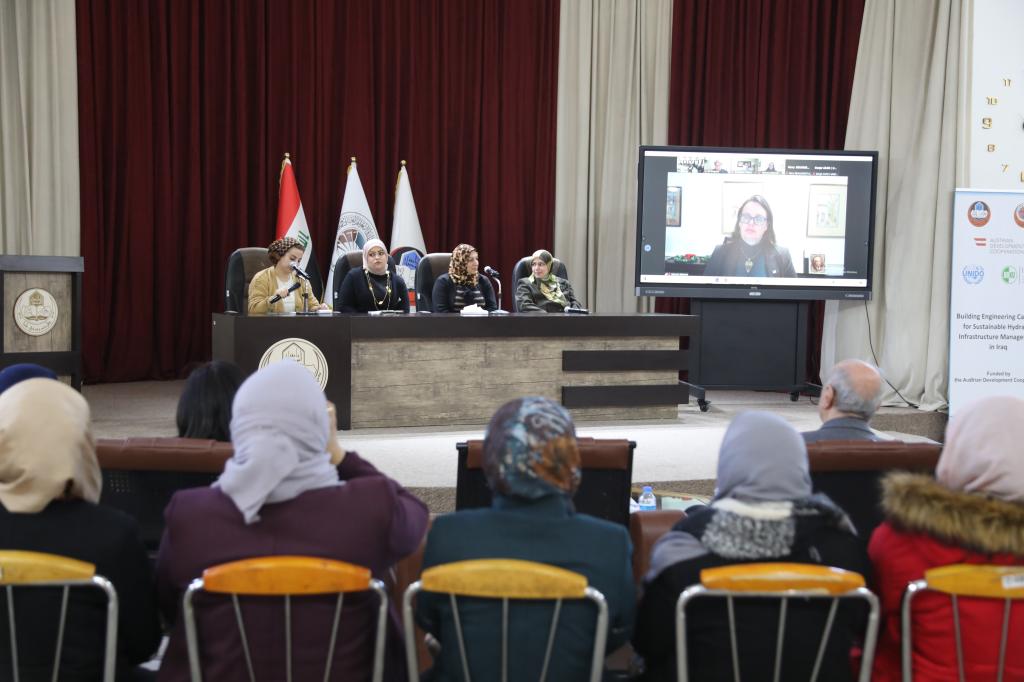 برعاية وحضور السيد رئيس جامعة الموصل الاستاذ الدكتور قصي كمال الدين الاحمدي وبإشراف الاستاذ الدكتور عبد الرحيم ابراهيم جاسم عميد كلية الهندسة وبالتعاون مع منظمة الامم المتحدة للتنمية الصناعية ووحدة تمكين المرأة في رىاسة جامعة الموصل، اقام قسم هندسة السدود والموارد المائية في كلية الهندسة ورشة عمل حوارية تحت عنوان ( نساء في الهندسة ) ، حضرها عميد الكلية ورؤساء الاقسام في كلية الهندسة وتدريسيين وتدريسيات من الكلية والسيد مدير مشروع سد الموصل المهندس رياض عز الدين وعدد من منتسبي السد وشخصيات نسائية هندسية من الدوائر المختلفة في المدينة فضلا عن طالبات من اعدادية سد الموصل للبنات .القت خلالها وعبر الفضاء الكتروني السيدتان فينسا وجورجيا من الولايات المتحدة الامريكية اللتان عملتا سابقا كمهندسات في مشروع سد الموصل محاضرتان عن تجاربهن العملية في ميدان الهندسة كنساء والصعوبات التي واجهتهن خلال مسيرتهن في هذا المجال .ادار جلسة الحوار الحضورية كلا من الدكتورة انتصار رزاق ممثل منظمة الامم المتحدة للتنمية الصناعية والسيدة ليلى سيف الدين مسؤول وحدة تمكين المرأة في رئاسة الجامعة والاستاذ المساعد عزة نصر الله التدريسية في قسم هندسة السدود والموارد المائية بكلية الهندسة في جامعة الموصل.ناقش الحضور من الكادر النسائي من مختلف دوائر المحافظة قصص نجاحهن والتحديات التي واجهتهن في مضمار العمل الهندسي وكيفية تجاوزها والابداع المتحقق في مسيرتهن العلمية والعملية .تهدف الورشة الى التعريف بمنجزات المهندسات في مضمار العمل الهندسي والهام الجيل الجديد من طالبات اعدادية سد الموصل للبنات في تبني الهندسة كطموح في مشوار حياتهن المستقبلية .