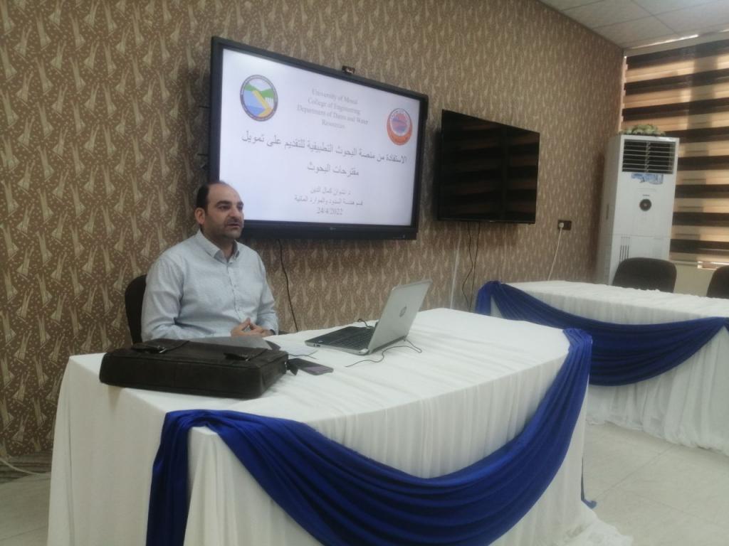 أقامت كلية الهندسة ورشة ورشة عمل عن الاستفادة من منصة البحوث التطبيقية يوم الأحد ٢٤ نيسان ٢٠٢٢،تحت عنوان “الاستفادة من منصة البحوث التطبيقية للتقديم على تمويل مقترحات البحوث” ،تناولت الورشة التي أقامها قسم هندسة السدود والموارد المائية والتي ألقى محاضراتها الدكتور نشوان كمال الدين محمد،مفهوم منصة البحوث التطبيقية و أنماطها وأهم المعايير اللازم توفرها في البحث العلمي وما هي الاسس التي يتبعها الباحث وتمويل مقترحات البحوث وخاصة الخاصة بمقترحات بحوث الاشراف على طلبة الدراسات العليا، ومقارنة ذلك مع الاسلوب العالمي في استحصال تمويل للافكار البحثية في الجامعات العالمية.اوصت الورشة بضرورة رفع المقترحات الى كل الجهات المختصة للتعريف ايضا بنتاج الاقسام العلمية وربط الجامعات مع باقي الوزارات.