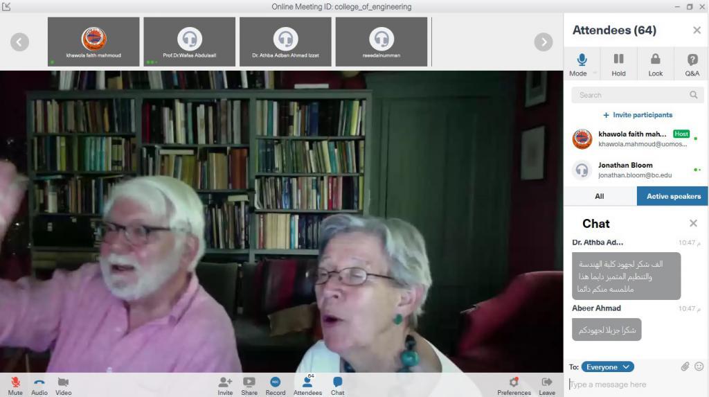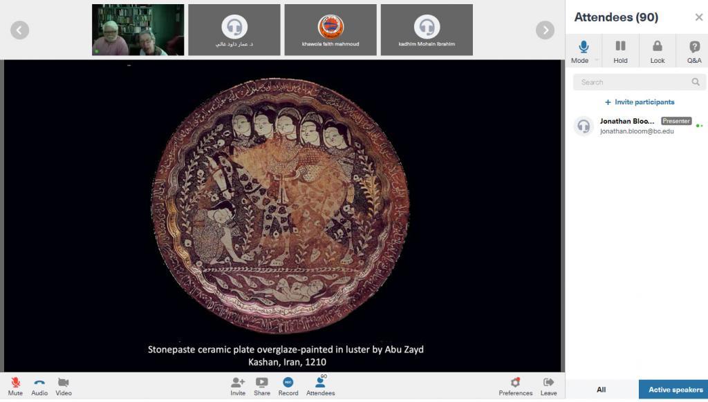 عبر الفضاء الالكتروني وباستخدام البرنامج التفاعلي FCC ، حضرها عدد من المهتمين بالعمارة الاسلامية من مختلف جامعات العراق.