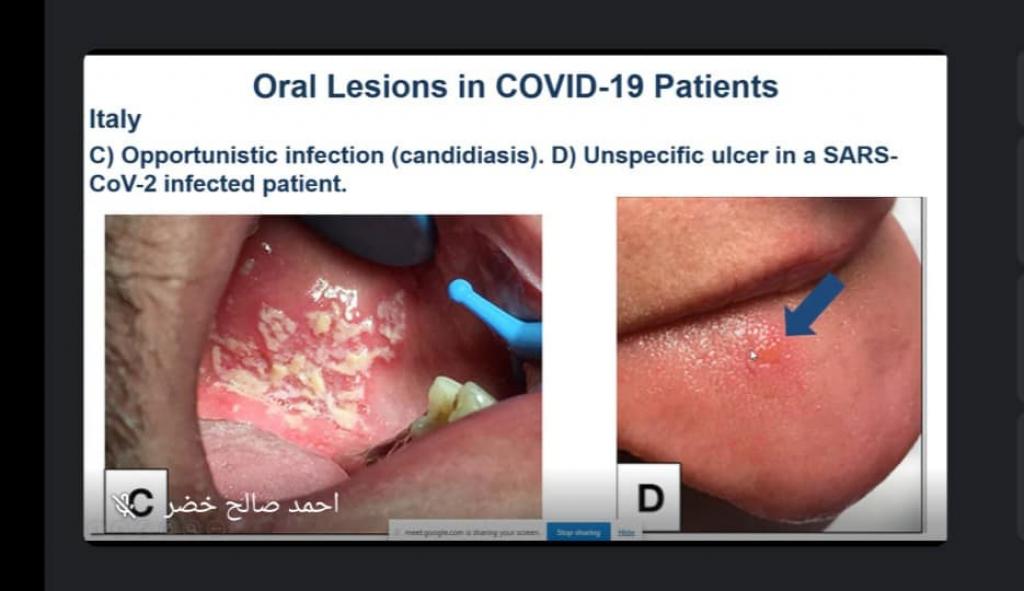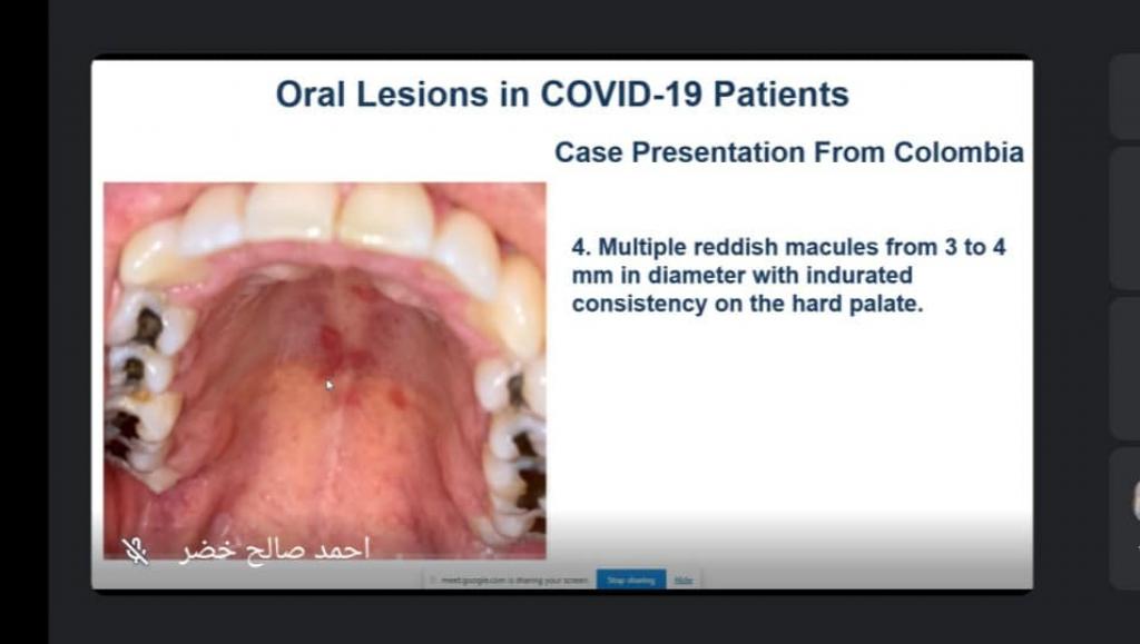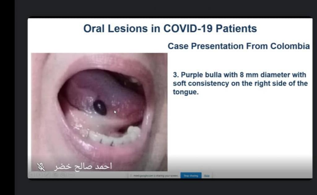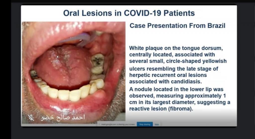 فرع جراحة الفم و الوجه والفكين في كلية طب الاسنان بجامعة الموصل حلقة نقاشية عن آفات الفم المتعلقة بمرضى كورونا ((Oral Lesion in COVID-19 patients.