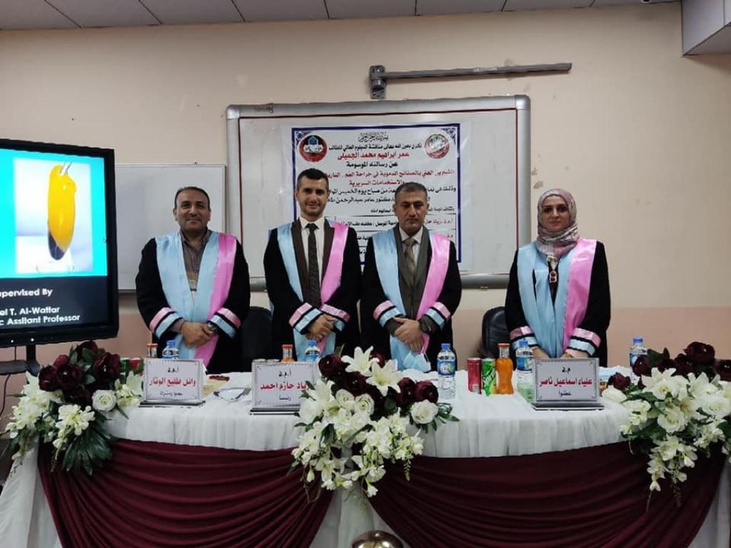 ترأس لجنة المناقشة الاستاذ المساعد الدكتور زياد حازم أحمد) وعضوية الدكتورة علياء إسماعيل ناصر وبإشراف وعضوية الاستاذ المساعد الدكتور وائل طليع الوتار.