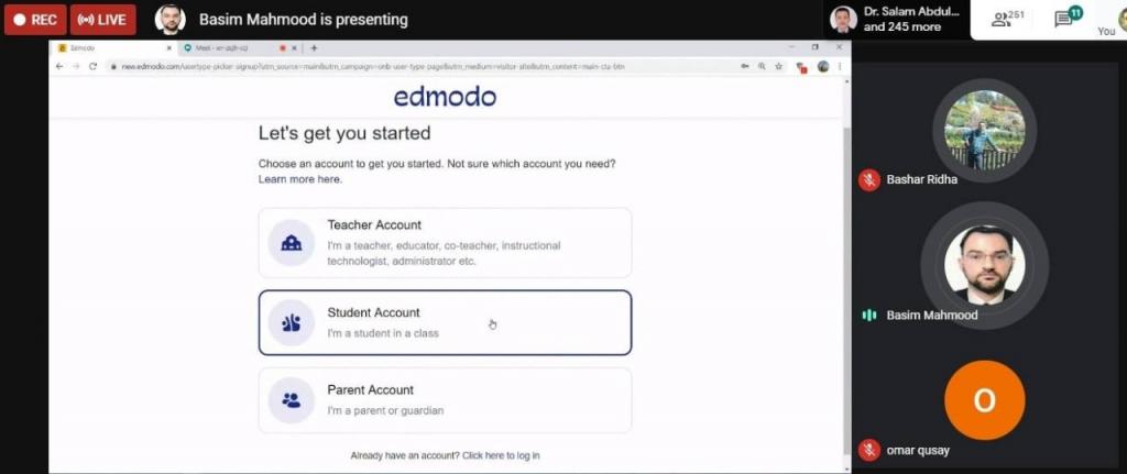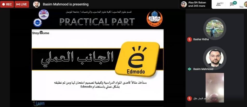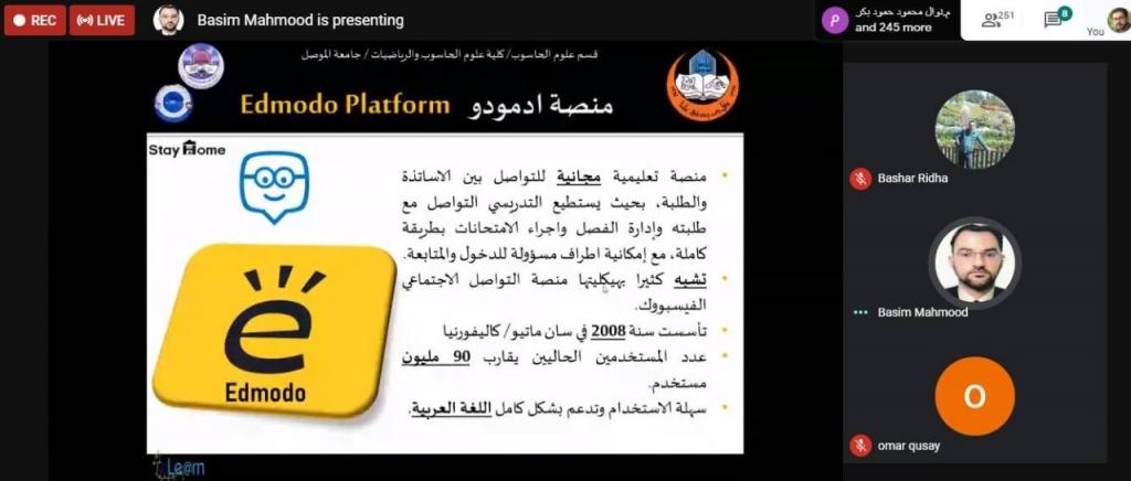 القى فيها التدريسي باسم محمد محمود محاضرة تناولت شرحاً مفصلاً عن منصة Edmodo، وكيفية تكوين وانشاء امتحانات الكترونية تجرى وتدار عن بعد باستخدام المنصة المذكورة.