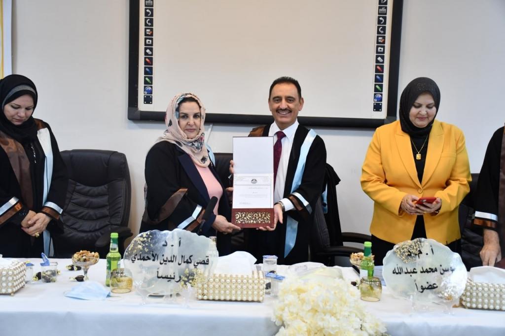 ترأس الاستاذ الدكتور قصي كمال الدين الاحمدي رئيس جامعة الموصل مناقشة اطروحة دكتوراه تعد الاولى من نوعها عن التشخيص الجزيئي لبعض أنواع البكتريا المنتجة لدقائق الذهب النانوية المعزولة من بيئات محلية” جرت في كلية التربية للعلوم الصرفة بجامعة الموصل يوم الاثنين 16 آب 2021، حضر المناقشة عميد الكلية الأستاذ المساعد الدكتور قيس اسماعيل ابراهيم وعدد من السادة التدريسيين .