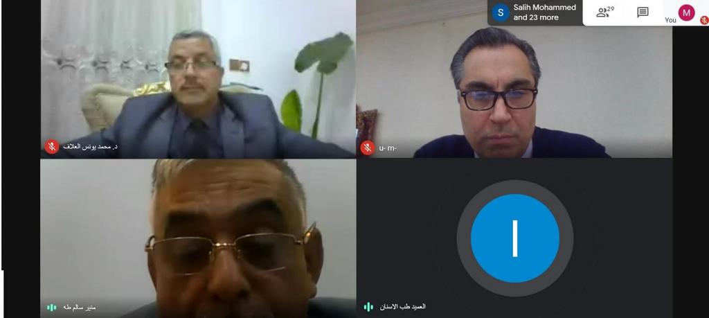 عقد مجلس جامعة الموصل برئاسة الاستاذ الدكتور قصي كمال الدين الاحمدي جلسته عبر الفضاء الالكتروني مساء يوم الاحد الموافق 5 نيسان 2020 بحضور اعضاء المجلس .تناول الاجتماع ثلاثة محاور اساسية كان الاول حول التعليم الالكتروني وضرورة تطوير اسلوبه في تقديم المعلومة للطالب بحيث يغطي المنهج ويركز على المواضيع المهمة فيه وترك الخيار للتدريسي باختيار البرنامج المناسب لذلك كونه سيدخل في التقييم السنوي للأساتذة العام القادم, وفي محور الثاني اكد الاجتماع على اهمية تفعيل دور الجامعة في خدمة المجتمع وتسخير كافة الامكانيات المتاحة للجامعة لخدمة دوائر الدولة خصوصا الدوائر التي تعمل على مواجهة هذا الوباء . وتم في المحور الثالث مناقشة جميع الصعوبات والمشاكل التي ظهرت اثناء تطبيق نظام المقررات وايجاد الحلول لها، بالإضافة الى مناقشة المقترحات والمواضيع التي تخدم العملية التعليمية التي طرحها السادة اعضاء مجلس الجامعة .