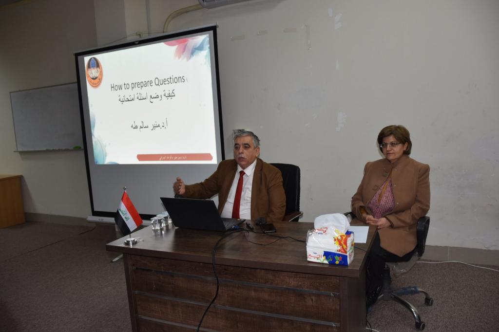 حضرها الاستاذ الدكتور منير سالم طه مساعد رئيس الجامعة للشؤون العلمية محاضرا فيها حول الية وضع الاسئلة واساسياتها والتعريف بأنواعها .. فتح بعدها باب النقاش والرد على الاستفسارات والتساؤلات .