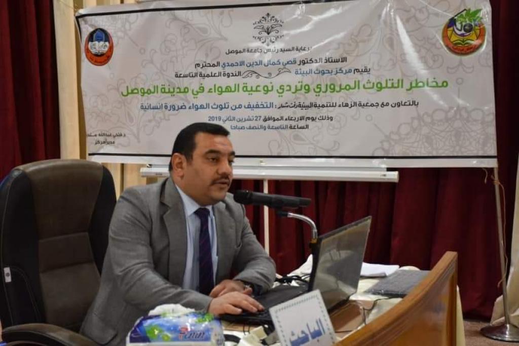 تفعيلاً لدور الجامعة في تقديم خدماتها للمجتمع ،عقد مركز بحوث البيئة والسيطرة على التلوث ندوته العلمية التاسعة الموسومة ((مخاطر التلوث المروري وتردي نوعية الهواء في مدينة الموصل )) برعاية الاستاذ الدكتور قصي كمال الدين الاحمدي رئيس جامعة الموصل حضرها ع/ مساعد رئيس الجامعة للشؤون الادارية الدكتور احمد طارق ممثلاً عن السيد رئيس الجامعة وعدد من عمداء الكليات وممثل عن مديرية مرور نينوى ومديرة بيئة نينوى