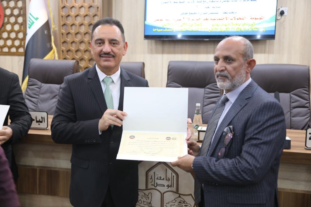 برعاية وحضور الاستاذ الدكتور قصي كمال الدين الاحمدي رئيس جامعة الموصل وبإشراف الاستاذ الدكتورة ميسون ذنون العبايجي مدير مركز دراسات الموصل والاستاذ المساعد الدكتور محمد علي محمد عفين عميد كلية الآداب ، أقام مركز دراسات الموصل وبالتعاون مع كلية الآداب ندوته العلمية ال (60) الموسومة “التحولات الاجتماعية بعد أحداث 2014 على مدينة الموصل” ، يوم الثلاثاء 22 تشرين الثاني 2022.