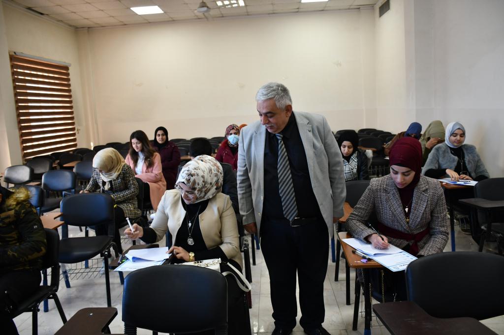 مساعد رئيس الجامعة للشؤون العلمية يتفقد القاعات الامتحانية للمشاركين في مسابقة بطل الرياضيات في التكامل
