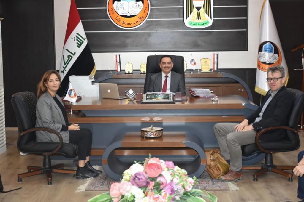 زار وفد مركز الحوار الانساني بتشكيلة من المستشارين ضمت السيدة هاجر عالم والسيد باتريك هيني والسيد آرثر كيني الباحث في جامعة السوربون بباريس جامعة الموصل والتقى الاستاذ الدكتور قصي كمال الدين الاحمدي رئيس الجامعة.