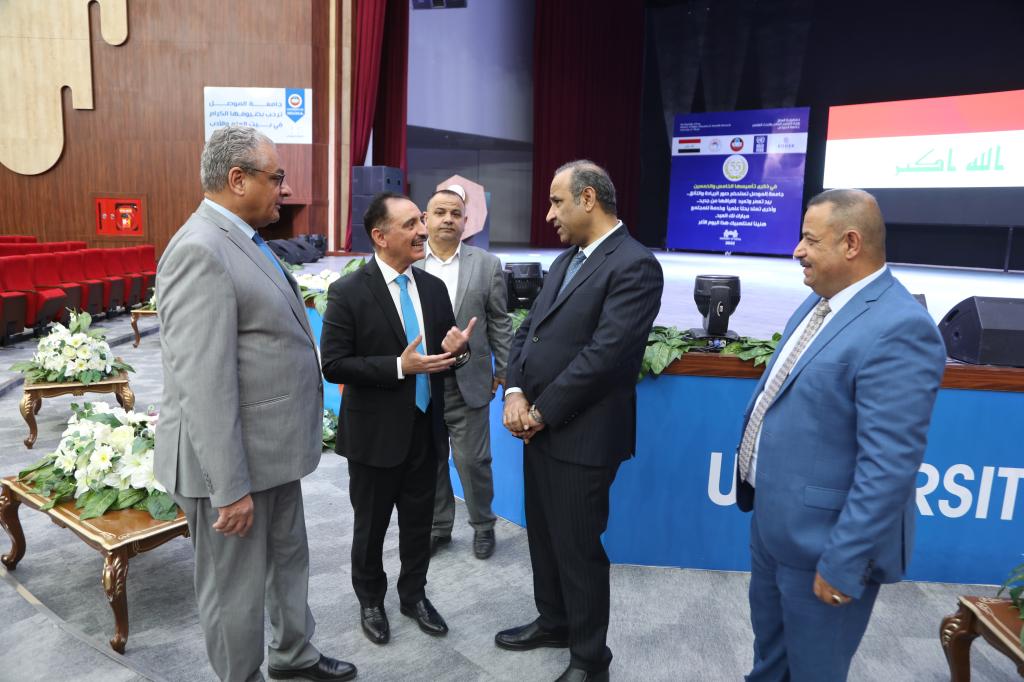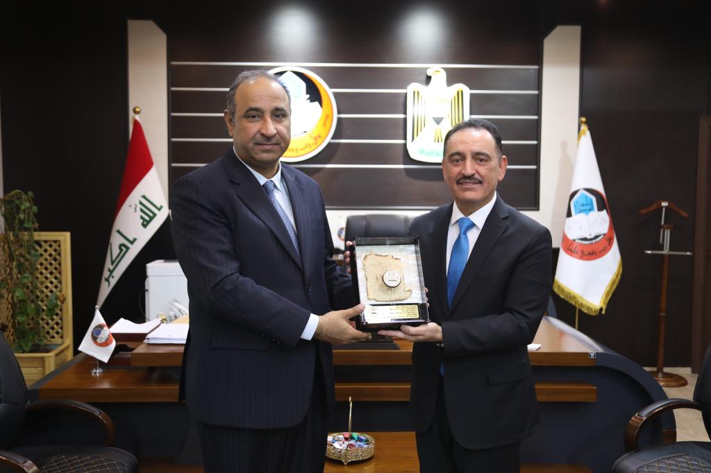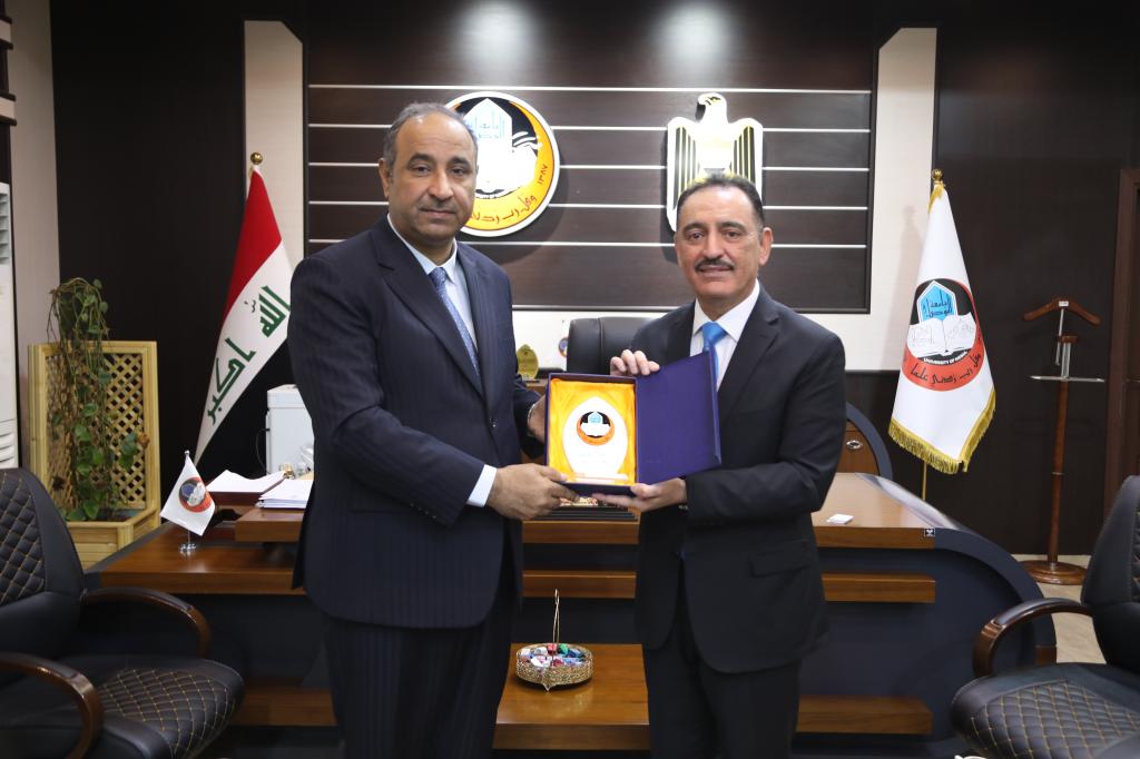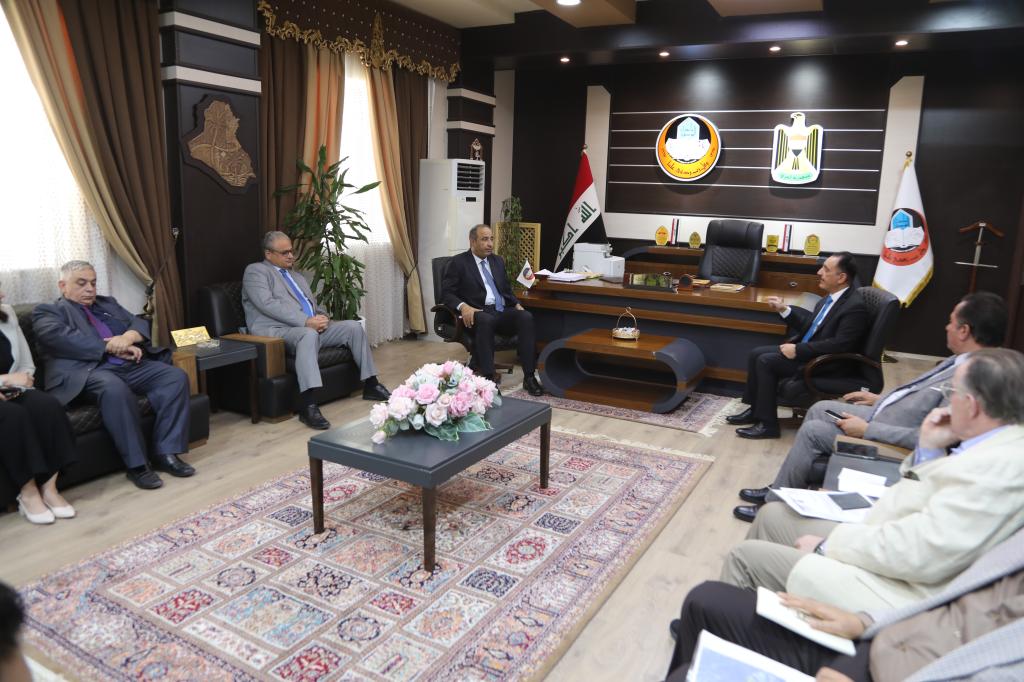 كان في استقبال معاليه الاستاذ الدكتور قصي كمال الدين الأحمدي رئيس الجامعة بمكتبه الرسمي، مرحباً به في ضيافة جامعة الموصل،