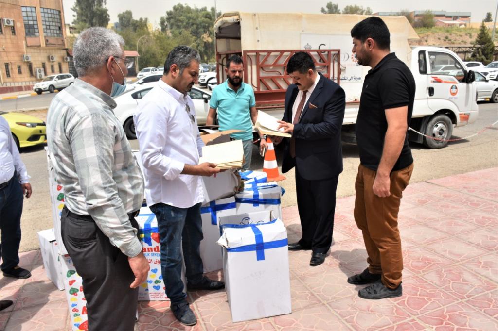 ضمن حملة “رفوف المعرفة” التي أطلقها رصيف الكتب في نينوى وقدمتها جمعية الإصلاح للتنمية المجتمعية ، تلقت مكتبات كليات جامعة الموصل صباح يوم الاحد 8 آب 2021، الشحنة الثانية من الكتب بواقع (2000) كتاب بعناوين واختصاصات مختلفة من أساتذة ومثقفي واكاديميي جامعة بغداد ، حيث تم توزيعها الى عدد من مكتبات كليات جامعة الموصل ، كما التقى السيد رئيس الجامعة الاستاذ الدكتور قصي كمال الدين الاحمدي بالفريق المشرف على الحملة، مشيداً بجهودهم ومعرباً عن شكره وتقديره لكل الجهات الداعمة للمكتبة المركزية ولمكتبات كليات الجامعة .