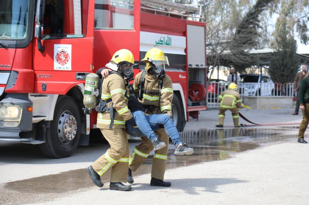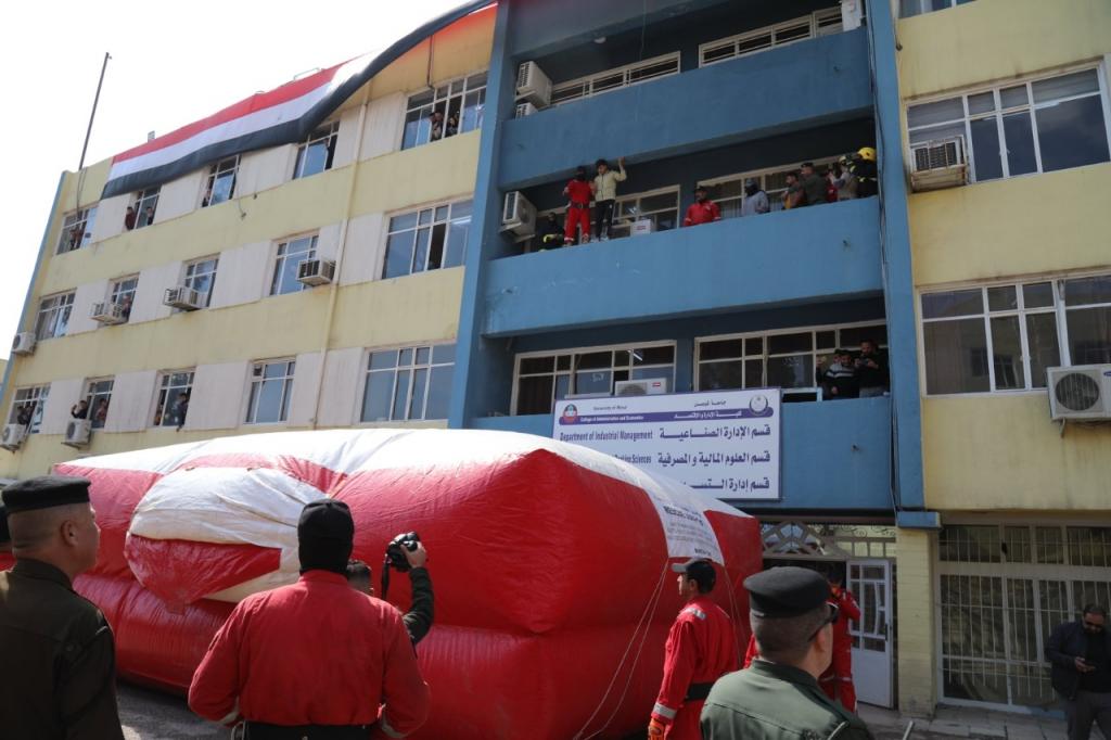 ممارسة ميدانية واسعة عن اعمال الدفاع المدني في كلية الادارة والاقتصاد