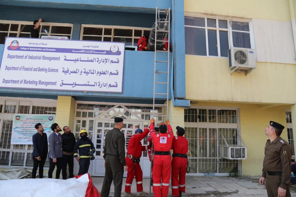 جرت يوم الثلاثاء 15الموافق آذار 2022 ، وبالتنسيق بين شعبة الدفاع المدني وفريق cbrn وقسم الاعلام والعلاقات العامة في رئاسة جامعة الموصل ممارسة تدريبية عن اعمال الدفاع المدني في كلية الادارة والاقتصاد، حضرها عميد الكلية الاستاذ الدكتور ثائر احمد سعدون السمان وعدد من السادة اعضاء مجلس الجامعة ومسؤولي الوحدات المشاركة ، تضمنت الممارسة اعمال اطفاء وانقاذ وتطهير واعمال الاسعافات الاولية ، شارك فيها كل من شعبة الدفاع المدني لجامعة الموصل واليات مديرية الدفاع المدني مع كوادرها ودائرة صحة نينوى وجهاز الامن الوطني وقوة حماية الجامعة.