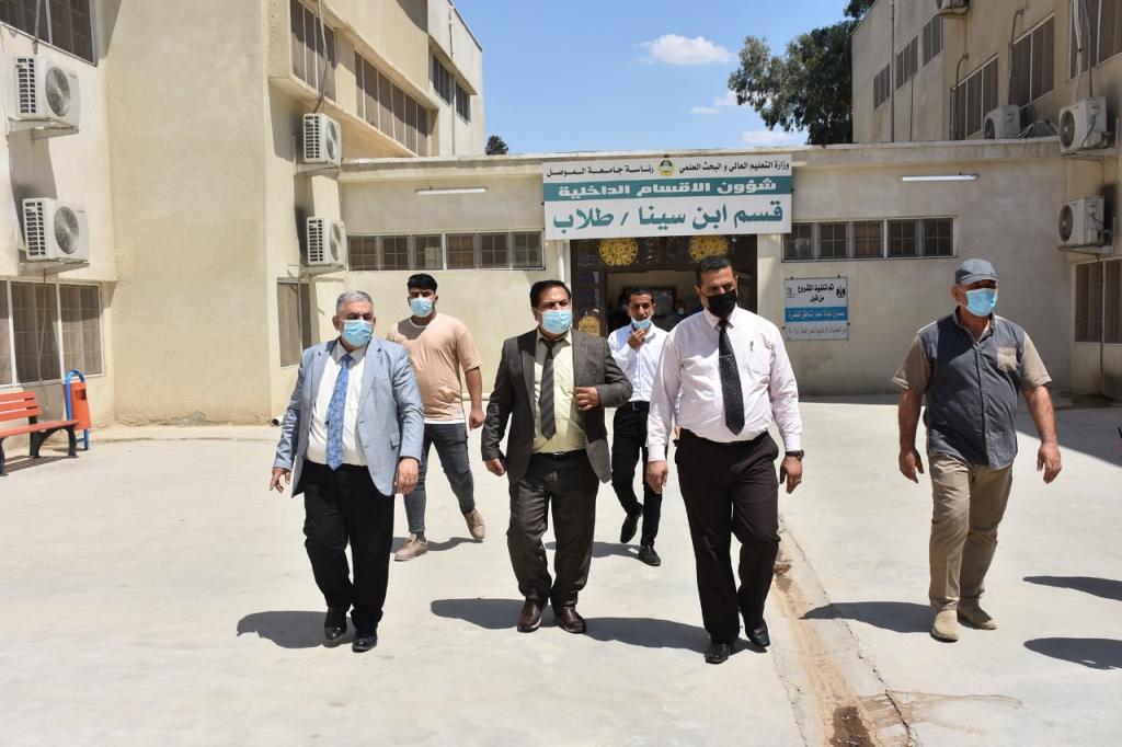 كما زار ممثل الفريق الوزاري الاقسام الداخلية للطلبة والطالبات في جامعة الموصل ، مطلعاً على الاجواء الدراسية فيها و الاستعدادات التي هيئتها الجامعة من اجل صحة وسلامة ابنائها الطلبة لتمكينهم من اداء الامتحانات باجواء مناسبة .