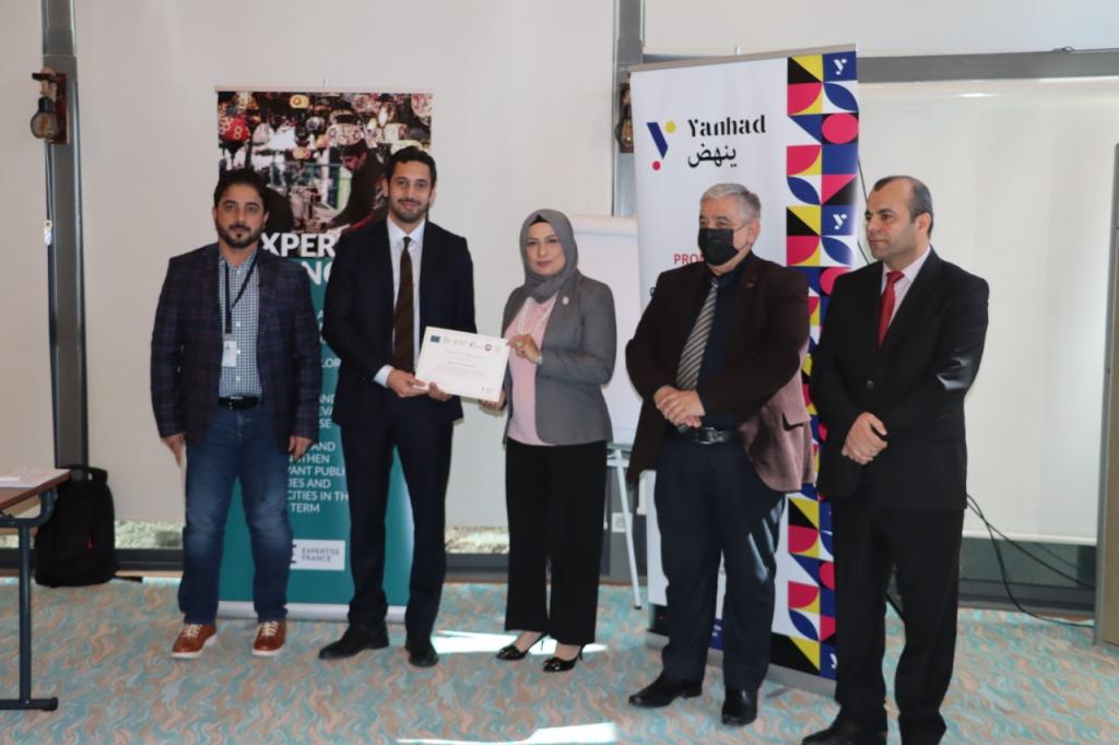 تم في ختام الورشة توزيع شهادات المشاركة بحضور السيد مساعد رئيس الجامعة للشؤون العلمية الاستاذ الدكتور منير سالم طه والسيد مدير المكتب التنفيذي لمنظمة خبراء فرنسا في العراق السيد طاهر بن عطية ، كما جرى على هامش الورشة مناقشة آليات تنفيذ معرض الوظائف القادم .