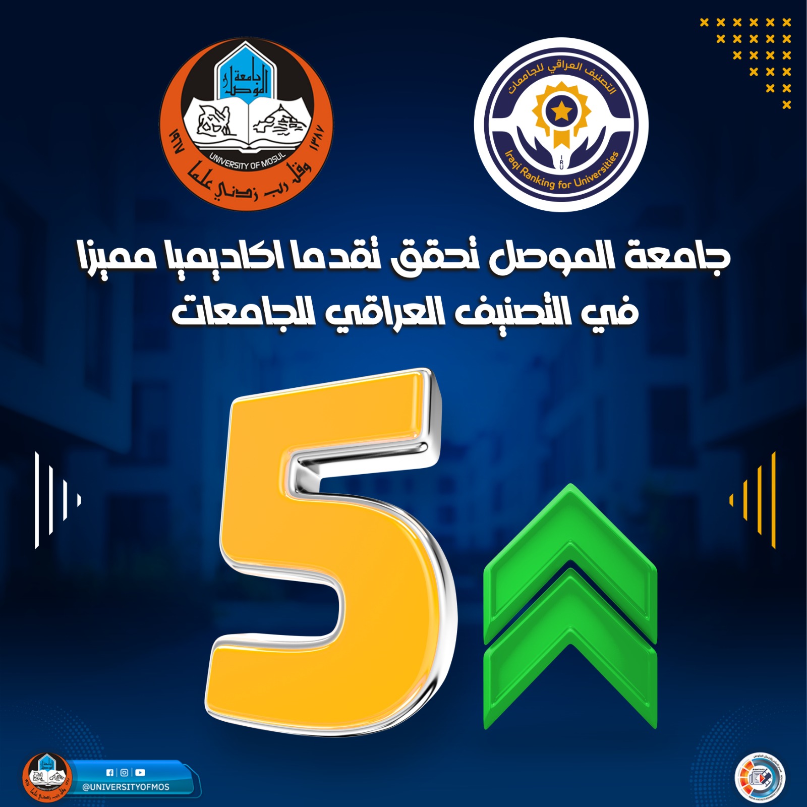 بهذه المعطيات، تُجسد جامعة الموصل مكانتها كمؤسسة أكاديمية رائدة، تجمع بين أصالة الماضي وحداثة الحاضر، لتظل منارة علمية وبحثية في العراق والمنطقة.