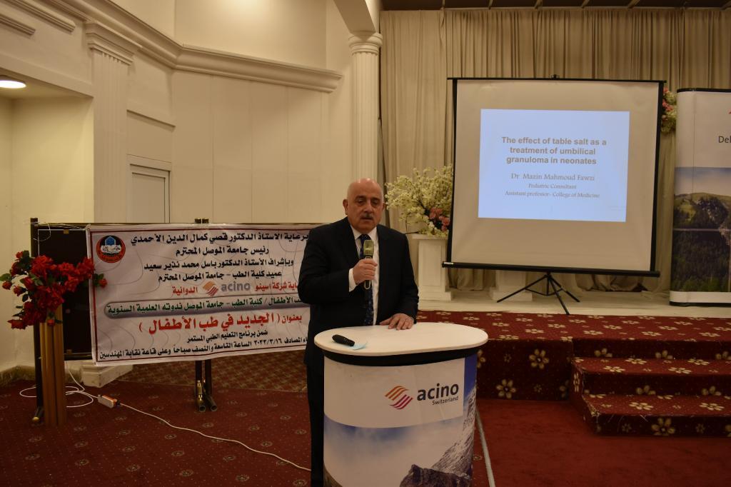 برعاية الأستاذ الدكتور قصي كمال الدين الأحمدي رئيس جامعة الموصل وبإشراف وحضور عميد كلية الطب الأستاذ الدكتور باسل محمد نذير سعيد، اقام فرع طب الأطفال في الكلية ندوته العلمية عن آخر المستجدات والبحوث العلمية في طب الأطفال، يوم الأربعاء 16 آذار 2022، حضرها عدد من أعضاء مجلس الكلية ونقيب أطباء العراق/ فرع نينوى والعديد من تدريسيي كليتي الطب لجامعتي الموصل ونينوى واطباء اختصاص من دائرة صحة نينوى.
