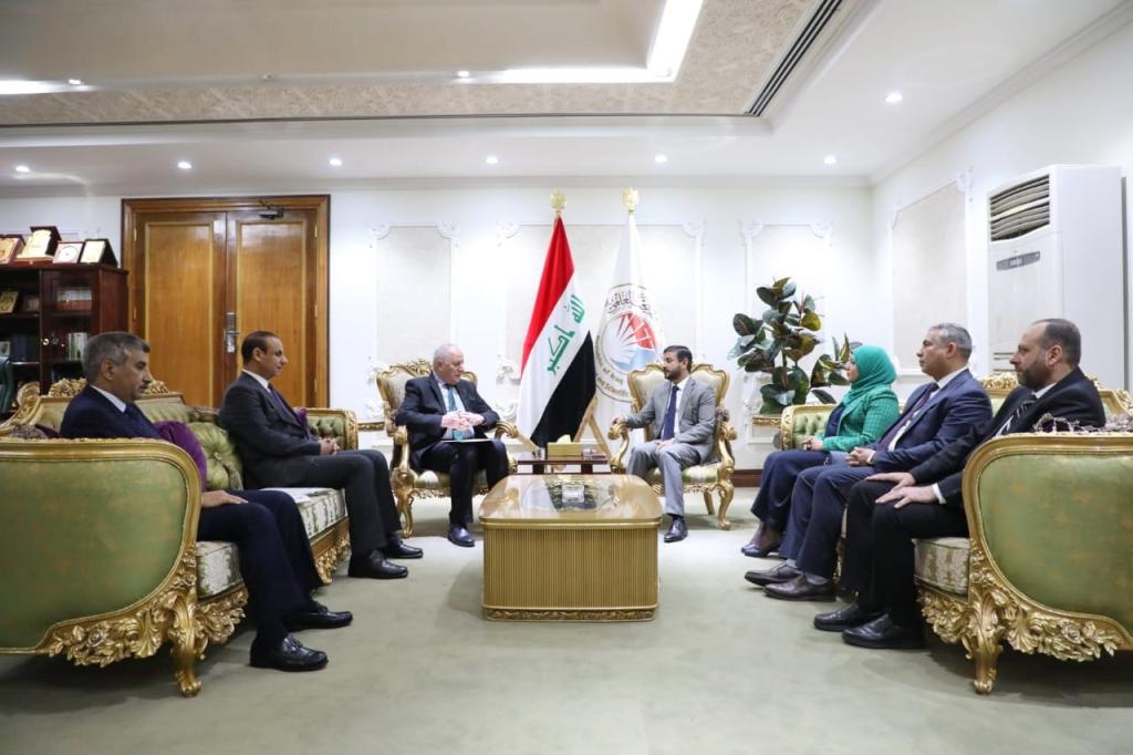 استقبل وزير التعليم العالي والبحث العلمي الدكتور نعيم العبودي وفدا من لجنة التعليم النيابية برئاسة الدكتور مزاحم الخياط.وناقش المجتمعون طيفا من المحاور العلمية والإدارية المتعلقة بالشؤون الجامعية على صعيد الدراسات الأولية والعليا في الجامعات والكليات الحكومية والأهلية.وأكد وزير التعليم خلال اللقاء أن وزارة التعليم العالي والبحث العلمي مهتمة اهتماما بالغا بكل مفاصل العملية التعليمية وتسعى في كل الظروف الى تقديم الخدمات العلمية والتعليمية والاستشارية التي تنسجم وحاجة المجتمع.بدوره أعرب رئيس لجنة التعليم النيابية الدكتور مزاحم الخياط عن دعم السلطة التشريعية لمنظومة التعليم العالي في العراق وحرصها على توفير مجالات التكامل والتعاون التي تحقق النجاح المنشود.دائرة العلاقات والإعلام