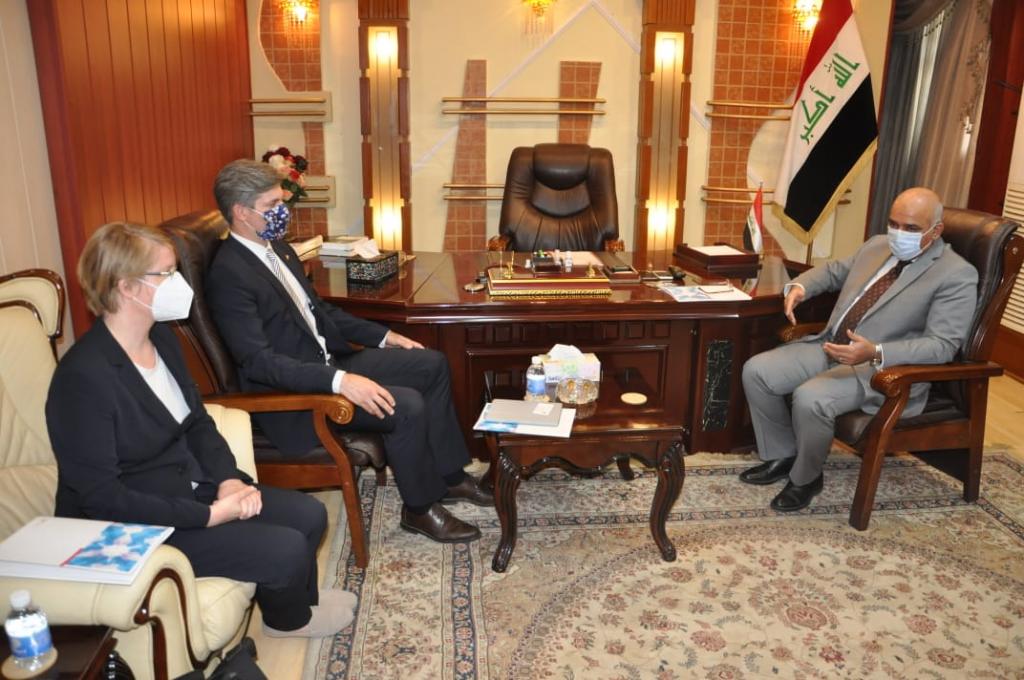 استقبل وزير التعليم العالي والبحث العلمي الأستاذ الدكتور نبيل كاظم عبد الصاحب وفد الوكالة الألمانية للتعاون التنموي الإنمائي برئاسة السيد مارسيل فينهوفن مسؤول مجموعة التنمية الاقتصادية في العراق والوفد المرافق له.وناقش الحاضرون مسارات التعاون المشترك في مجال التعليم العالي في العراق وإمكانية الدعم وتوفير الخبرات اللازمة لإنشاء مختبرات الحوكمة الإلكترونية في الجامعات العراقية.وأوضح معالي الوزير خلال اللقاء أن التعليم العالي تعمل على استمرار دعم الخريجين من خلال مراكز التأهيل والتوظيف بالتعاون مع المنظمات الدولية ومنها الوكالة الألمانية للتعاون التنموي الإنمائي.في سياق متصل قال السيد مارسيل فينهوفن مسؤول مجموعة التنمية الاقتصادية إن الوكالة الألمانية تسير على وفق برامج مشتركة مع وزارة التعليم العالي ولاسيما في مشاريع الطاقة المتجددة في البصرة لافتا الى أن ثمة برامج تحظى بأولوية في التنفيذ وهي التعاون في المجال التكنولوجي لأهميته في ظل جائحة كورونا.دائرة العلاقات والاعلام