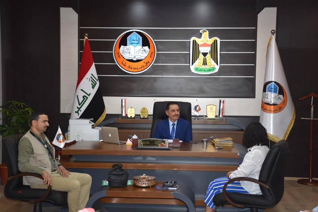 استقبل الاستاذ الدكتور قصي كمال الدين الاحمدي رئيس جامعة الموصل في مكتبه الرسمي يوم الاحد الموافق 15 ايلول 2019 وفداً من المجلس الدنماركي لمساندة اللاجئين DRC برئاسة السيدة تالين مدير المنظمة في المنطقة الشمالية تضمن اللقاء آلية تفعيل التعاون ما بين جامعة الموصل والمنظمة الدانماركية في القطاعات التي تعمل بها وخصوصا في مجال نشر الوعي القانوني عند طلبة الجامعة ومنتسبيها كذلك امكانية دعم المنظمة لفعاليات اعادة الإعمار في الجامعة.