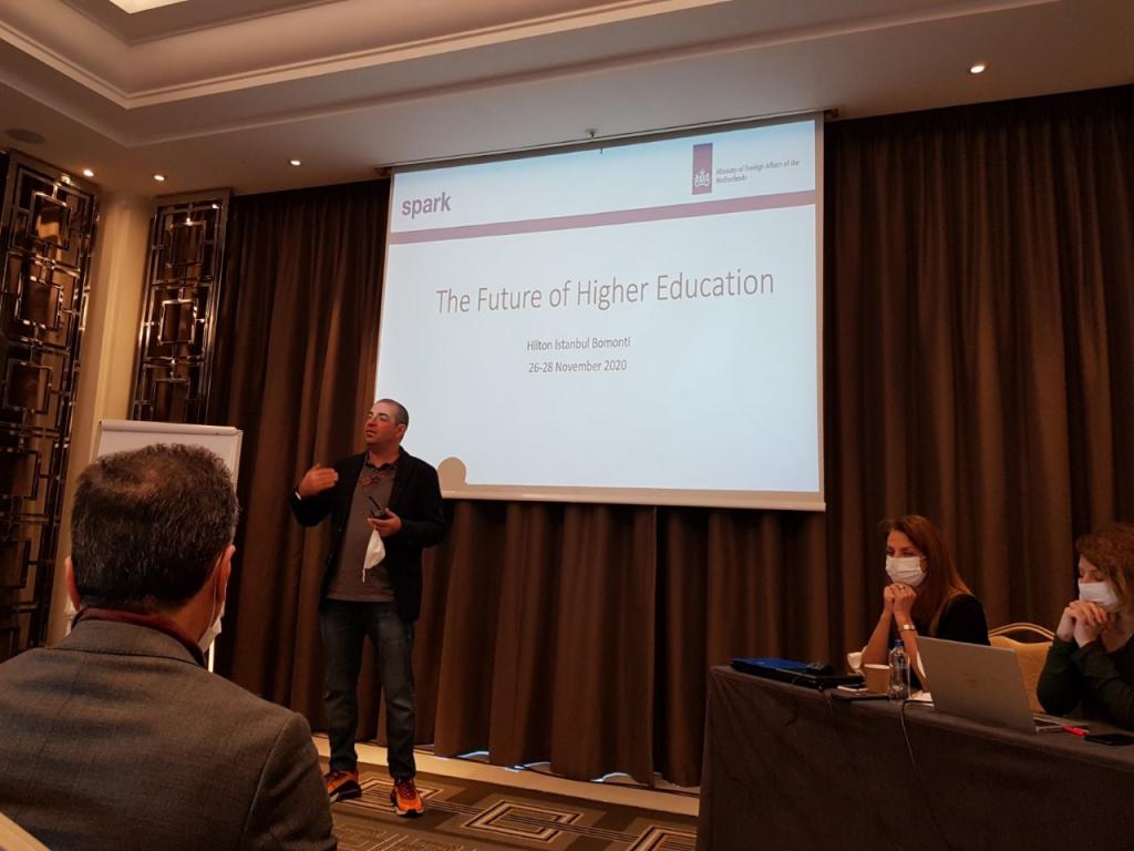 بتوجيه من الاستاذ الدكتور قصي كمال الدين الاحمدي رئيس جامعة الموصل و بدعوة من منظمة سبارك الهولندية حضر وفد من الجامعة برئاسة الاستاذ الدكتور منير سالم طه مساعد رئيس الجامعة للشؤون العلمية أعمال الورشة الاكاديمية الدولية “مستقبل التعليم العالي والتطوير المستدام للمناهج في العراق” والتي نظمتها منظمة سبارك في تركيا للفترة من 26-29 تشرين الثاني 2020 وبحضور الدكتورة ازهار جاسم رئيس قسم التطوير والتنمية البشرية في دائرة الدارسات في وزارة التعليم العالي والبحث العلمي. حيث قدم عدد من المحاضرين الدوليين محاضرات عن الية تطوير المناهج الجامعية عالميا و مستقبل التعليم العالي و اعتماد نظام بولونيا لتوصيف المناهج. كذلك تم تنظيم عدد من الجلسات النقاشية بإدارة خبراء دوليين حول كيفية تبني الاسس و الانظمة الدولية لتطوير المناهج بما يتناسب مع التعليم العالي في الجامعات العراقية و الية تطوير القدرات الاكاديمية للكادر التدريسي.