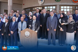 وشهدت الوقفة كلمة لرئيس الجامعة عبّر فيها عن تضامن جامعة الموصل مع أبناء المكون الأيزيدي، مؤكدًا التزام الجامعة بقيم العدالة والمساواة، وحرصها على أن تكون حاضنة لجميع مكونات المجتمع العراقي دون تمييز.