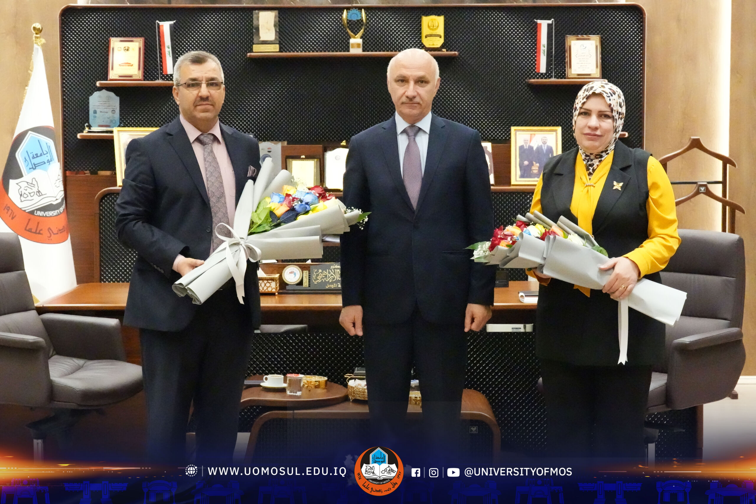 تبارك رئاسة جامعة الموصل، ممثلةً برئيسها الأستاذ الدكتور وحيد محمود الإبراهيمي، تسنّم الأستاذ الدكتور عبد الرحيم إبراهيم جاسم منصب المساعد العلمي لرئيس الجامعة، وتسنّم الأستاذ المساعد الدكتورة رفل حسن حامد منصب المساعد الإداري والمالي لرئيس الجامعة.