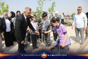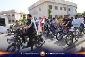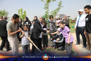 ودعماً لأهدافها الكبيرة بضمنها الحفاظ على البيئة من التلوث وبحضور كل من الاستاذ الدكتور عبد الرحيم ابراهيم مساعد رئيس جامعة الموصل للشؤون العلمية والاستاذ المساعد الدكتورة رفل حسن حامد المساعد الإداري لرئيس الجامعة ، أجرت جامعة الموصل سباقاً للدراجات الهوائية للطلبة ، وتعليم تلاميذ المدارس في نينوى كيفية وطرق زراعة الأشجار تشجيعاً لهم وتدريبهم على الأسس العلمية الصحيحة في الحفاظ على البيئة ونشر المساحات الخضراء ، وتقليلاً لآثار التلوث الوخيمة من اجل حياة مستدامة وغدٍ افضل .