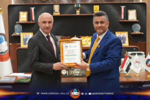 رئيس جامعة الموصل يتسلم درع التميز وشهادة شكر من مؤسسة “أُريد” الدولية