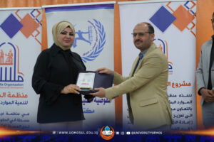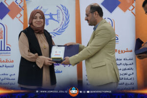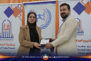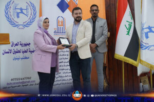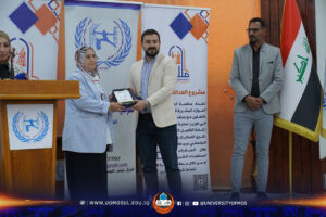 الأستاذ الدكتور وحيد محمود الإبراهيمي رئيس جامعة الموصل يتلقى تكريم المفوضية العليا لحقوق الإنسان / فرع نينوى ، بدرع التميز في احتفاليتها المخصصة لتكريم الأكاديميات المبدعات ، التي أقامتها اليوم الخميس ٨ آيار ٢٠٢٥ .