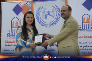 حيث تسلمت التكريم الاستاذ المساعد الدكتورة رفل حسن حامد مساعد رئيس الجامعة للشؤون الإدارية والمالية ، فضلاً عن تكريمها والسيدات عميدات كليات جامعة الموصل تقديراً لجهودهن وسعيهن لإغناء مسيرة التعليم العالي والبحث العلمي للجامعة بالكفاءة والرصانة العلمية من اجل رفعتها وشغلها مكانة متقدمة في المراكز العلمية العالمية المعروفة .
