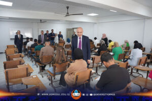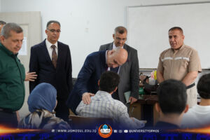 وخلال الجولة، اطّلع السيد رئيس الجامعة على أداء الطلبة داخل القاعات الامتحانية، مؤكداً توفّر المستلزمات الضرورية، وسير العمل بنظام المراقبة، مشددًا على أهمية توفير الأجواء الملائمة التي تمكّن الطلبة من أداء امتحاناتهم بأفضل صورة ممكنة.