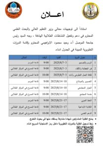 جامعة الموصل تطلق حزمة من الدورات التدريبية الصيفية