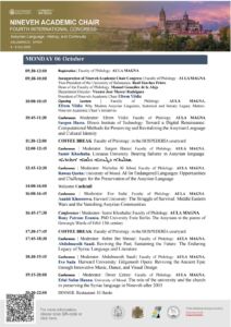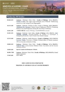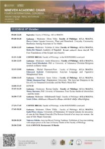 ضم وفد الجامعة عميد كلية التربية للعلوم الإنسانية الأستاذ الدكتور سعد رمضان محمد الجبوري، إلى جانب باحثين من قسم اللغة السريانية الأستاذ الدكتورة أطلال سالم حنا والأستاذ الدكتور عامر عبدالله الجميلي، وقدموا خلال المؤتمر بحوثا علمية تناولت محاور تاريخية ولغوية وثقافية ضمن اختصاص الكرسي الأكاديمي الآشوري.
