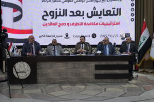 تواصلت فعاليات مؤتمر التعايش بعد النزوح: استراتيجيات مكافحة التطرف ودمج العائدين في يومه الثاني، يوم الاثنين الموافق ٢٧ تشرين الأول ٢٠٢٥، بحضور رئيس جامعة الموصل الأستاذ الدكتور وحيد محمود الإبراهيمي. وقد احتضن المنتدى العلمي والأدبي أعمال الجلسة الثالثة التي جاءت بعنوان: “الأطر القانونية والسياسات الوطنية للتعايش ومكافحة التطرف”.
