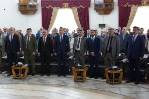 استُهلت أعمال المؤتمر بالنشيد الوطني وقراءة سورة الفاتحة على أرواح شهداء العراق، أعقبتها تلاوة مباركة من الذكر الحكيم إيذاناً بانطلاق جلسات هذا المؤتمر الوطني الهام.