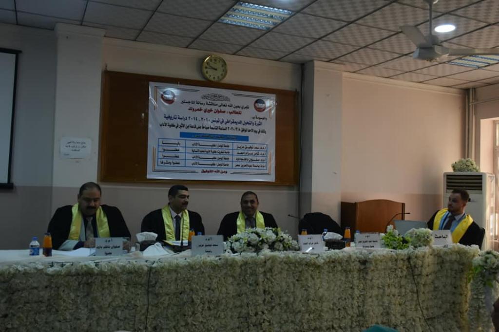 استمراراً لنهجه في دعم حركة البحث العلمي بجامعة الموصل ومتابعته لمشهد الدراسات العليا فيها ،حضر السيد رئيس الجامعة الاستاذ الدكتور قصي كمال الدين الاحمدي صباح اليوم الاحد الموافق 8 اذار 2020 جانباً من جلسة مناقشة رسالة الماجستير في التاريخ الحديث للطالب صفوان خيري خضروك الموسومة (الثورة والتحول الديمقراطي في تونس ٢٠١٠ – ٢٠١٤ دراسة تاريخية) في قاعة ابن الاثير بكلية الآداب ، تناولت الرسالة موضوعا مهما وهو التحول الديمقراطي في بقعة من البلاد العربية اعتمادا على الربيع العربي الذي اجتاح المنطقة في تاريخنا الحديث ومنها تونس بلد العينة التي اختارها الباحث لدراسته ولا سيما في المدة الواقعة بين الاعوام ٢٠١٠ – ٢٠١٤