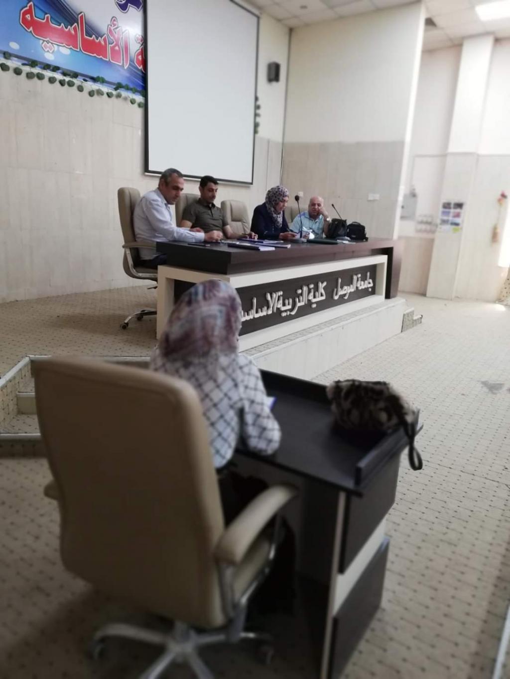 اجرى قسم رياض الاطفال بكلية التربية الاساسية في جامعة الموصل صباح اليوم الاحد الموافق 17 ايار2020 مناقشات بحوث التخرج لطالبات الصف الرابع وعلى قاعة الحدباء للمناقشات في القسم.