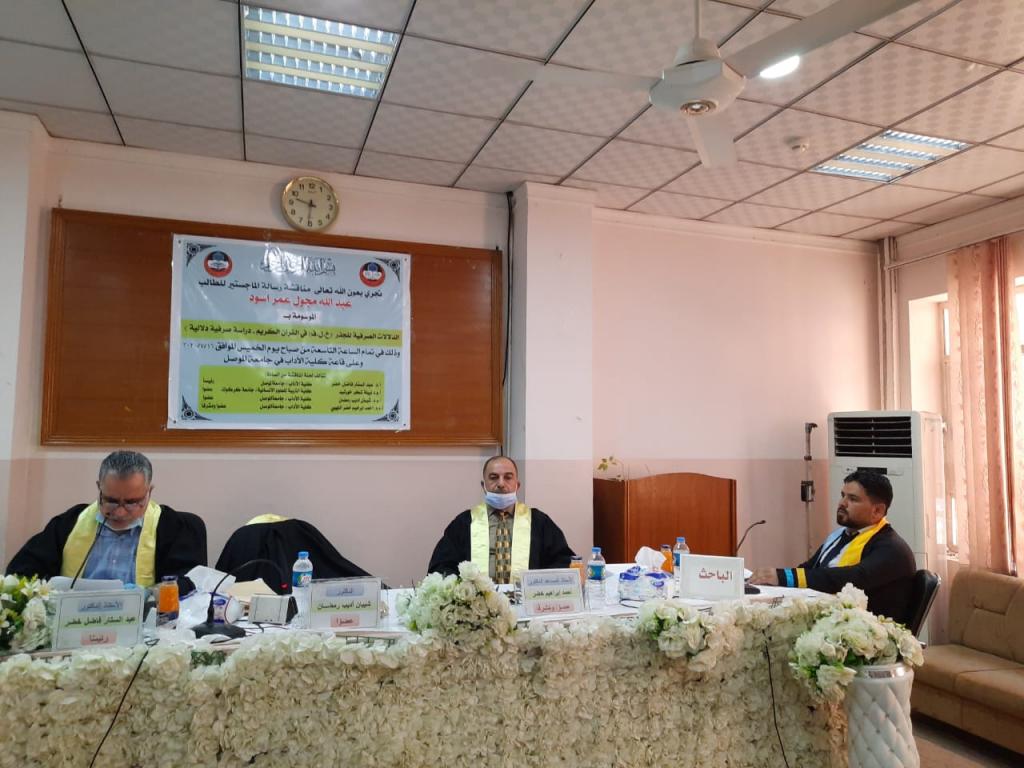 جرت مناقشة رسالة ماجستير في اللغة العربية للطالب عبد الله مجول عمر اسود الموسومة ب(الدلالات الصرفية للجذر (خ،ل،ف) في القران الكريم دراسة صرفية دلالية) يوم الخميس الموافق ١٦ تموز ٢٠٢٠ باشراف الاستاذ المساعد الدكتور احمد ابراهيم خضر وعضوية كل من الاستاذ الدكتور عبد الستار فاضل خضر النعيمي الاستاذ المساعد الدكتورة نبيلة شكر خورشيد ، والدكتور شيبان أديب رمضان.تناولت الدراسة دلالات الجذر اللغوي (خ،ل،ف) في القرآن الكريم بالدراسة صرفيا وحاولت استقراء هذه الدلالات الصرفية من خلال سياقاتها واعتماداً على كتب التراث للوقوف على هذه الاسرار الخفية وإعجاز القران الكريم فضلا عن جماليات الاستعمال القرآني