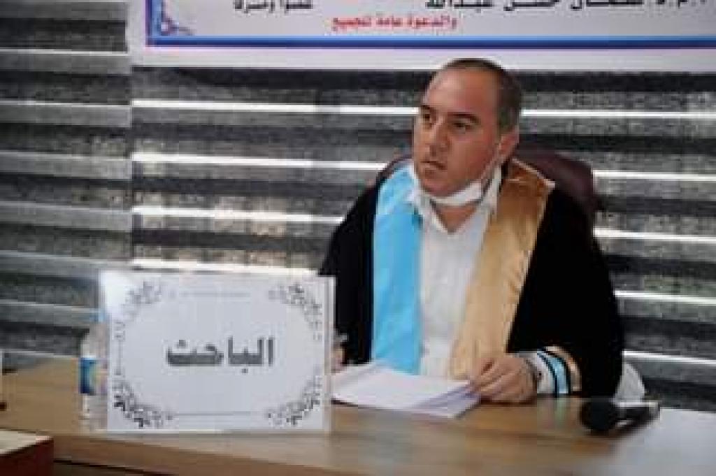 ناقشت كلية التربية للعلوم الإنسانية رسالة ماجستير بعنوان ( اختيارات الحداد الحنفي(ت:800هـ) في الجوهرة النيرة من كتاب الجنايات الى آخر كتاب الإكراه – دراسة فقهية مقارنة )، يوم الاربعاء الموافق ١٩ / آب / ٢٠٢٠ ، بحضور عميد الكلية .