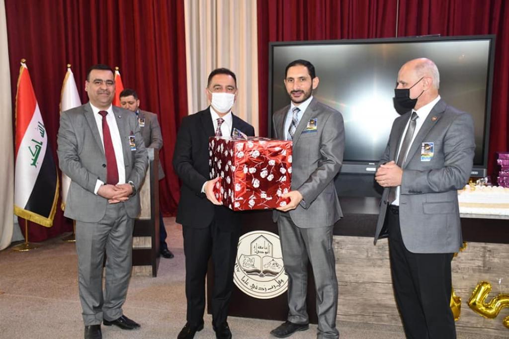 اقامت كلية الطب البيطري احتفالية بمناسبة الذكرى ال 45 لتأسيسها يوم الاحد 11نيسان 2021 حضرها الاستاذ الدكتو قصي كمال الدين الاحمدي رئيس جامعة الموصل والاستاذ الدكتور منير سالم طه مساعد رئيس الجامعة للشؤون العلمية والسيد عميد الكلية وعدد من تدريسيها .وعلى هامش الاحتفالية ووفاءاً لمنتسبيها تم تكريم نخبة من متقاعديها تدريسيين وموظفين ، حيث تم توزيع الهدايا التقديرية على المتقاعدين عرفانا بما قدموه خلال رحلة خدمتهم للكلية والجامعة ، كما تم تكريم الاساتذة الحاصلين على الترقيات العلمية ، لتؤكد الكلية وفاءها وتقديرها لكل الجهود الرامية لخدمة العلم والتعليم .