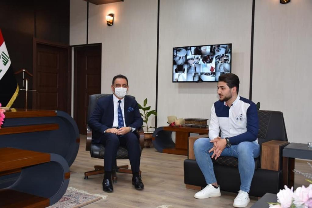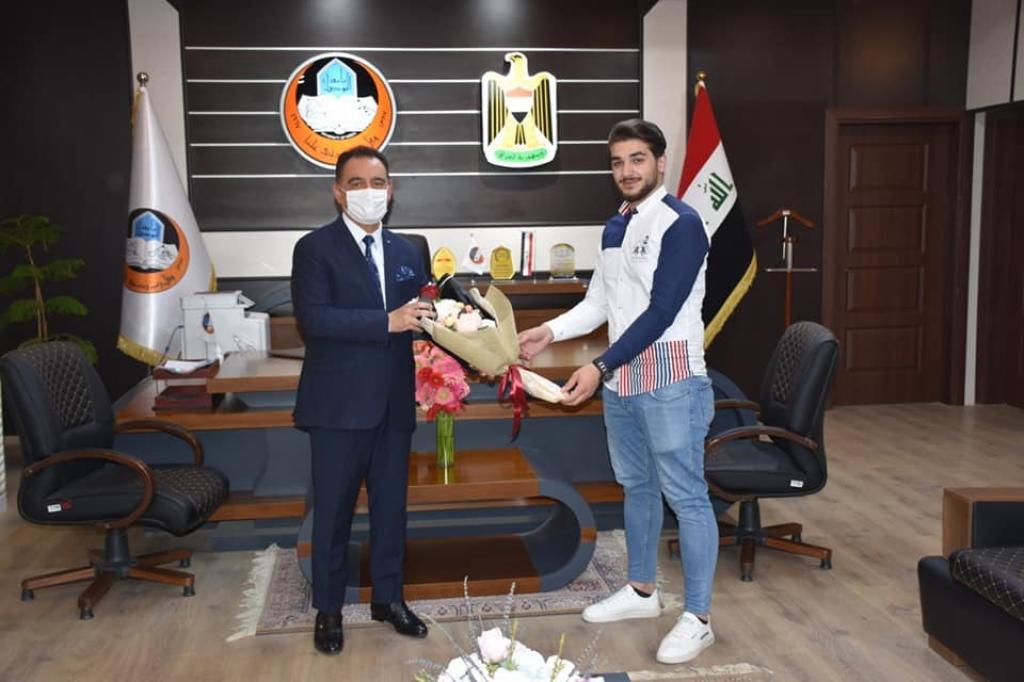 التقى الاستاذ الدكتور قصي كمال الدين الاحمدي رئيس جامعة الموصل ، يوم الخميس ٢٩ نيسان ٢٠٢١، الفنان المبدع (معاذ محمد عبد النافع) الطالب في المرحلة الأولى بقسم الشريعة كلية العلوم الإسلامية، والذي يؤدي أعماله الفنية بطريقة متميزة معاصرة ونشرها عبر وسائل التواصل الإجتماعي.